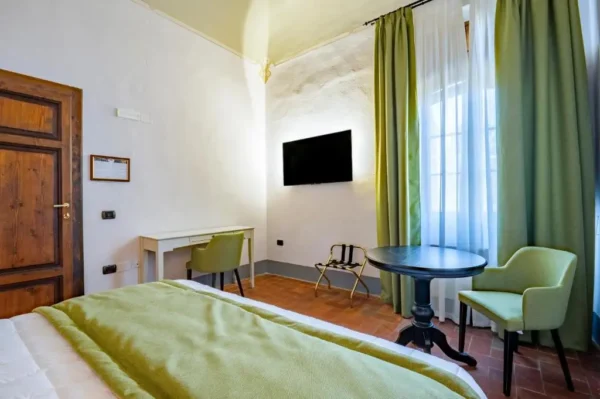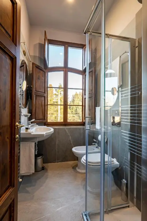 Ogni Suite è dotata di un ampio bagno con doccia, bidet, prodotti da bagno, set di cortesia, bollitore con caffè e tisane, asciugacapelli, asciugamani, TV, mini-bar, riscaldamento e aria condizionata,